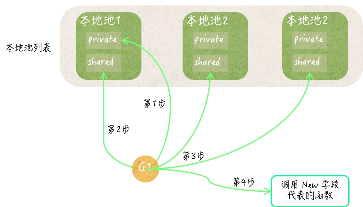 sync.Pool 中的本地池与各个 G 的对应关系
